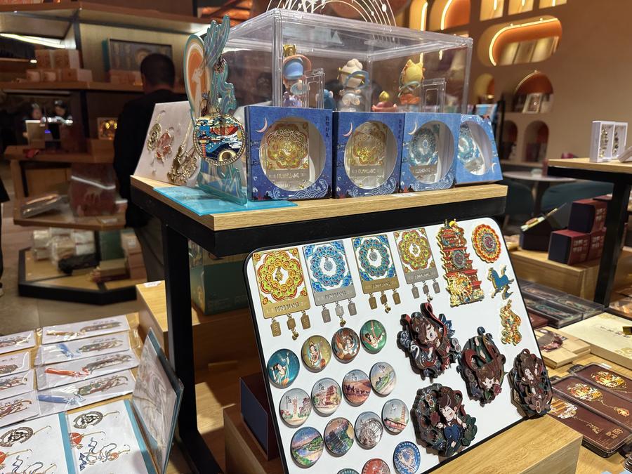 Creative cultural products are seen at a gift shop in Dunhuang, northwest China's Gansu Province, Sept. 21, 2024. (Xinhua/Zhang Wenjing)