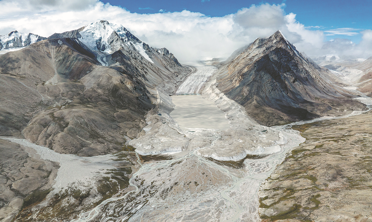 An aerial photo of a glacier in Drongba county, Xizang autonomous region, on Aug 24. [Photo/Xinhua]