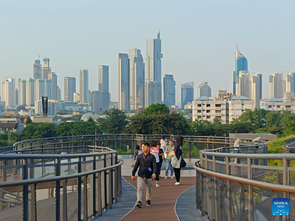 This photo taken with a mobile phone shows a city view taken from Senayan Park in Jakarta, Indonesia, July 12, 2024. Located on the northwest coast of Java Island, Jakarta is the largest city in Indonesia and is currently the political, economic and cultural center of the country. (Xinhua/Xu Qin)