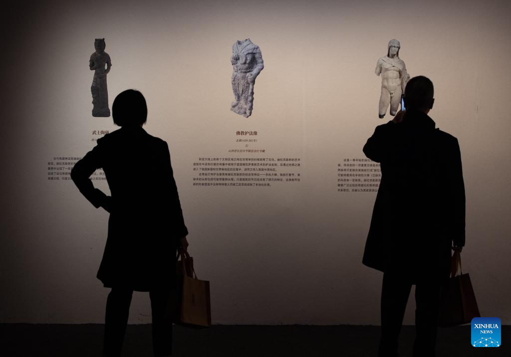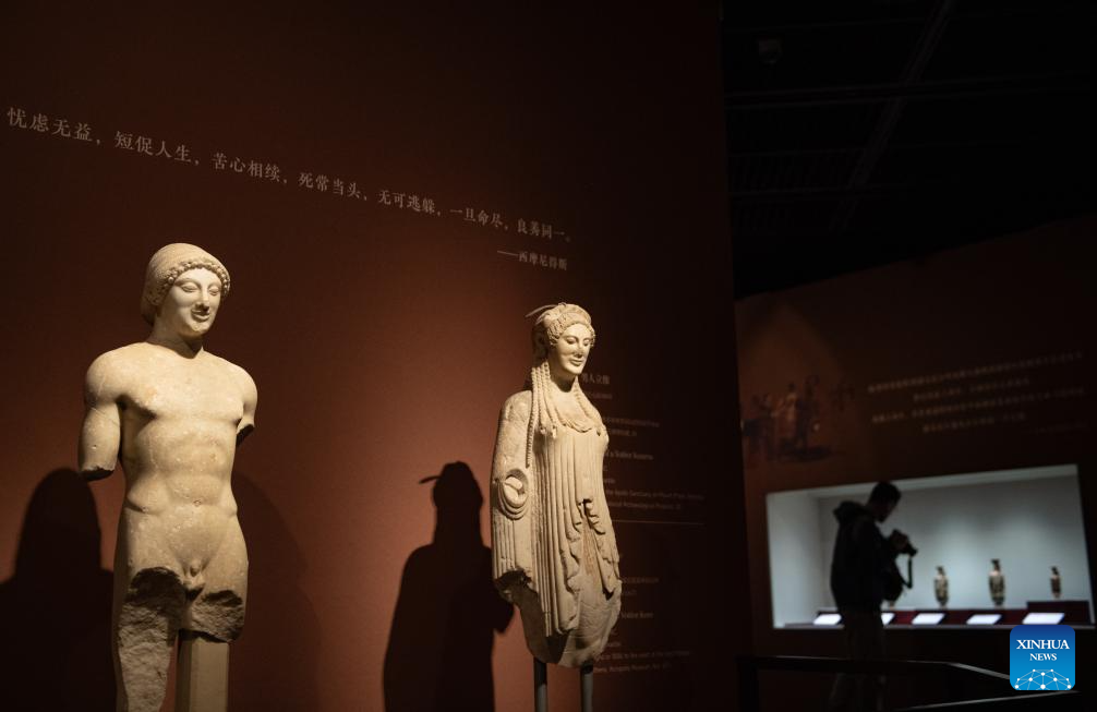 Visitors view exhibits at the exhibition "The Greeks: Agamemnon to Alexander the Great" at Capital Museum in Beijing, capital of China, Nov. 20, 2024. Featuring a total of 270 pieces or sets of exhibits from 14 museums across Greece, the exhibition will open to public on Nov. 21, 2024 and last till May 18, 2025. (Xinhua/Chen Zhonghao)