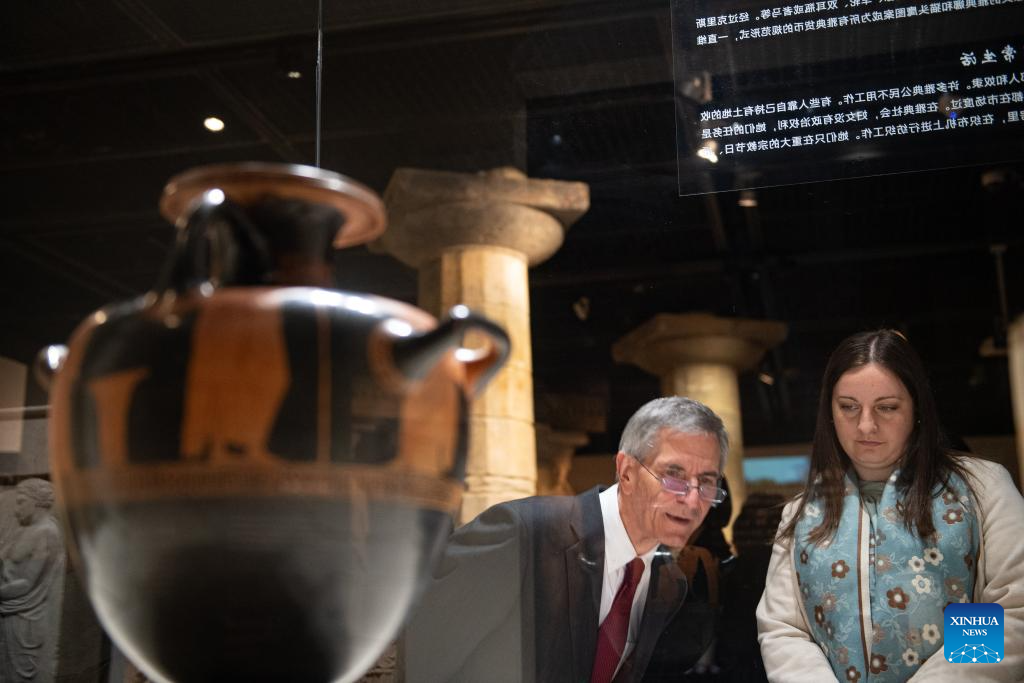 Overseas guests visit the exhibition "The Greeks: Agamemnon to Alexander the Great" at Capital Museum in Beijing, capital of China, Nov. 20, 2024. Featuring a total of 270 pieces or sets of exhibits from 14 museums across Greece, the exhibition will open to public on Nov. 21, 2024 and last till May 18, 2025. (Xinhua/Chen Zhonghao)