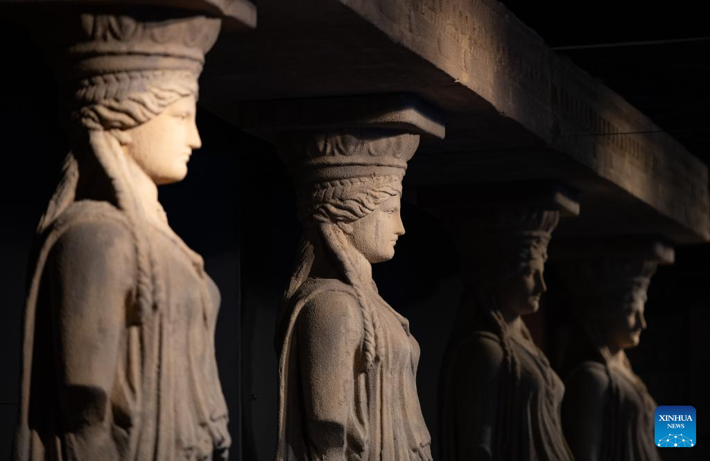 This photo taken on Nov. 20, 2024 shows ancient Greek statues on display at the exhibition "The Greeks: Agamemnon to Alexander the Great" at Capital Museum in Beijing, capital of China. Featuring a total of 270 pieces or sets of exhibits from 14 museums across Greece, the exhibition will open to public on Nov. 21, 2024 and last till May 18, 2025. (Xinhua/Chen Zhonghao)