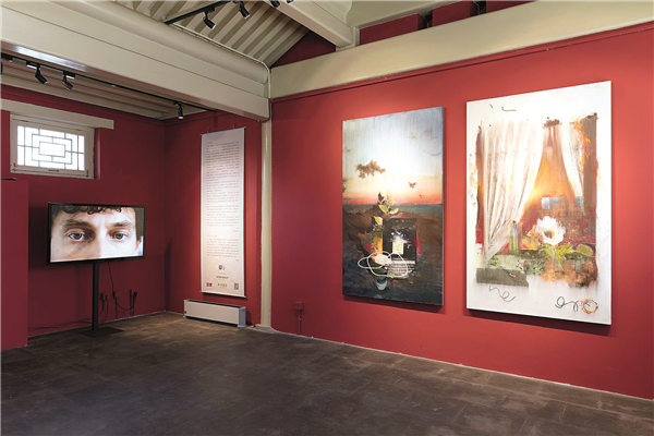 A corner of the exhibition, showing his video and artworks. The exhibition will run until Jan 17. [Photo provided to China Daily]
