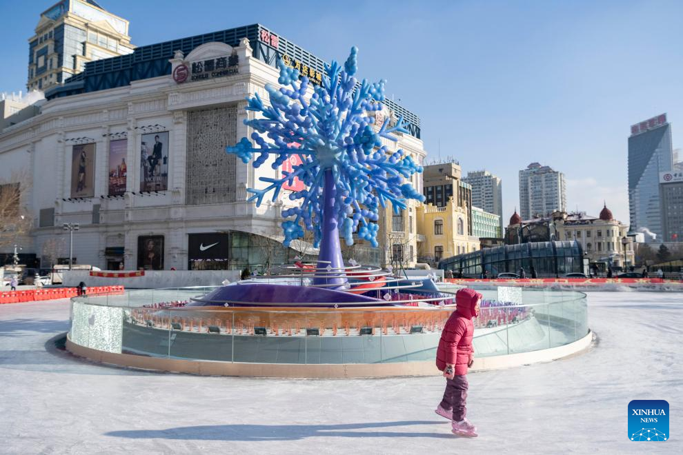 A child skates on an ice rink in Harbin, northeast China's Heilongjiang Province, on Jan. 8, 2025. The countdown to the 9th Asian Winter Games Harbin 2025 hits the 30-day mark on Jan. 8, 2025. (Xinhua/Xie Jianfei)