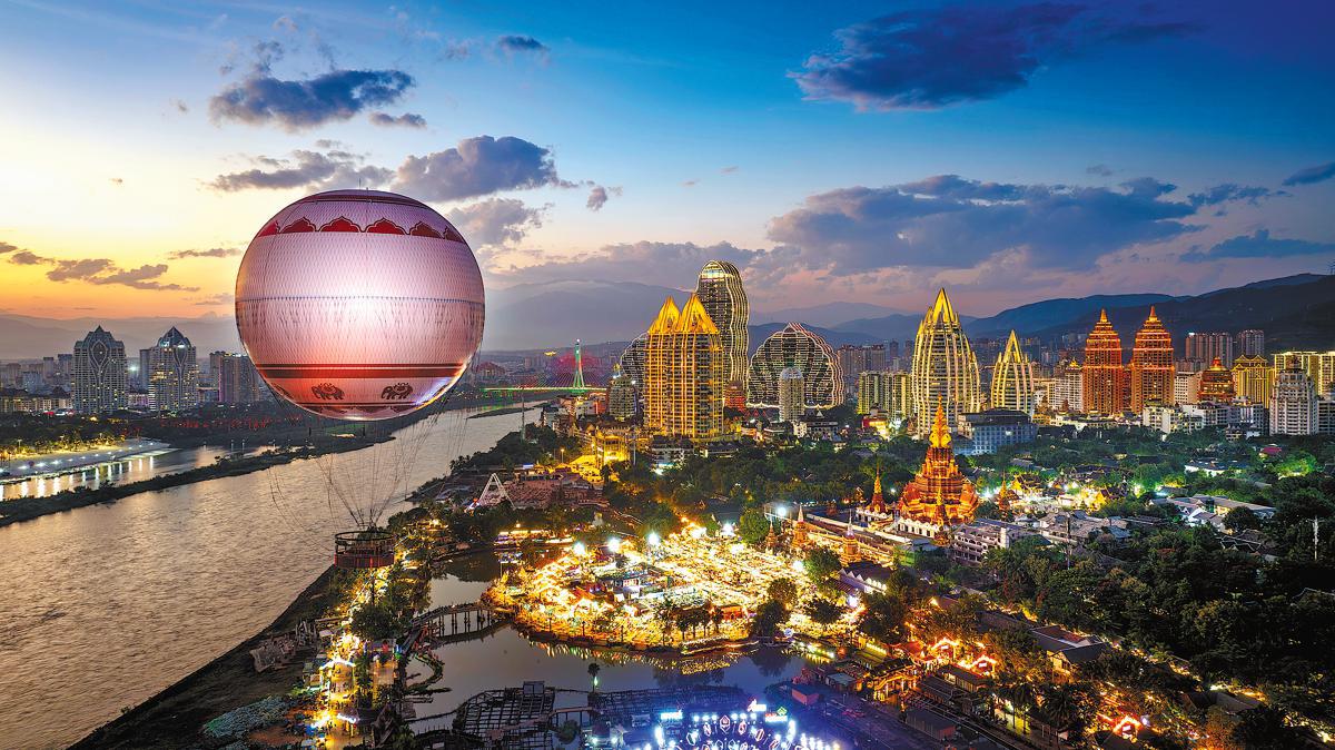 Tourists take a helium balloon ride to enjoy the enchanting scenery in Jinghong, Xishuangbanna Dai autonomous prefecture, Yunnan province, on Dec 7. LIU YUCAI/FOR CHINA DAILY