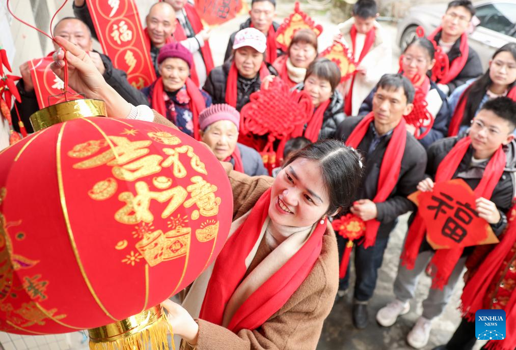People participate in Spring Festival celebration activities in Qingtian County of Lishui City, east China's Zhejiang Province, Jan. 23, 2025.