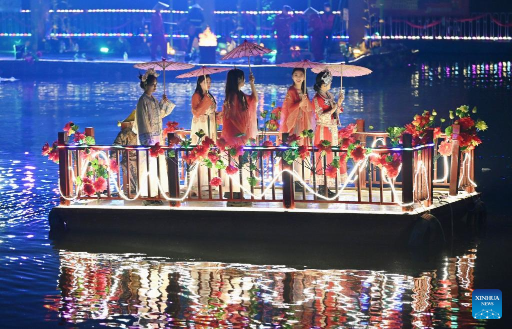 Actors perform during a Spring Festival parade by the West Lake in Hangzhou City, east China's Zhejiang Province, Jan. 23, 2025.