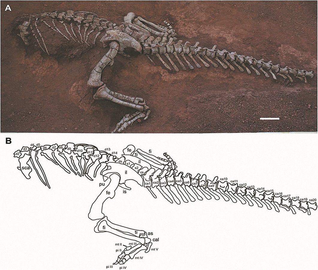 Scientists believe the creature belongs to the Xingxiulong species from the Lower Jurassic period and shares some similarities with the previously discovered Xingxiulong chengi, including having four sacral vertebrae.