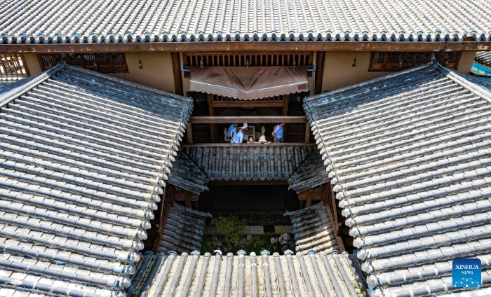 Tourists are pictured at a homestay in Leju Village in Xishan District of Kunming City, southwest China's Yunnan Province, July 23, 2025. Leju Village in Kunming is an ancient Yi ethnic village with a history of over 600 years. Its name, derived from the Yi language, means "the village at the foot of the rocky mountain," and it is renowned for its unique residential architecture.(Xinhua/Chen Xinbo)