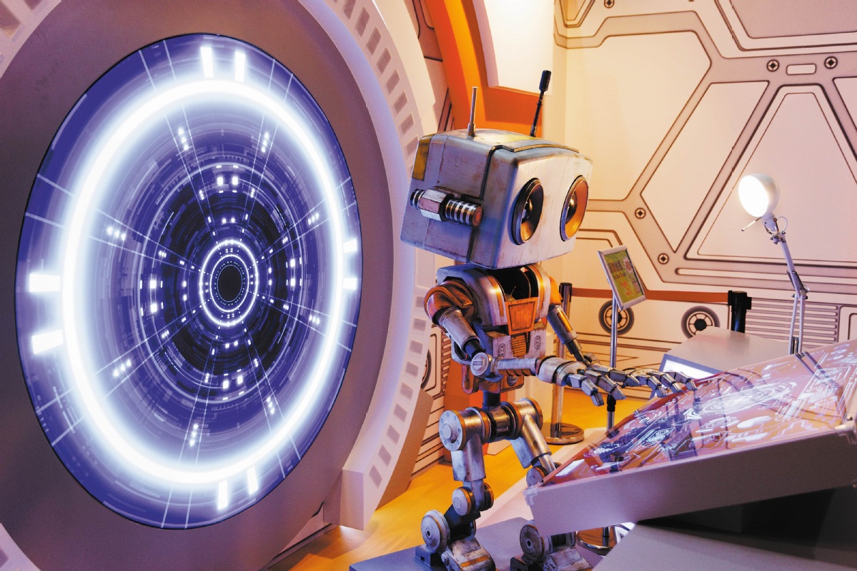A humanoid robot puts on an exhibition during an aerospace sci-fi show at the China Science and Technology Museum in Beijing on June 28. JIN LIWANG/XINHUA