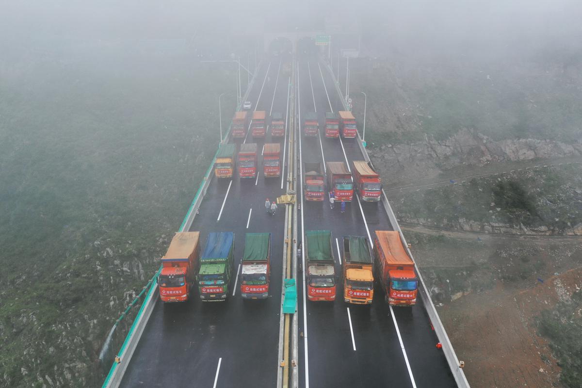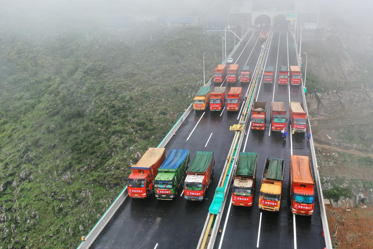 The tallest bridge in the world began pre-opening load tests in Guizhou province on Thursday, with maximum test weights exceeding 3,300 tons. [Photo by Liu Qing/For chinadaily.com.cn]
