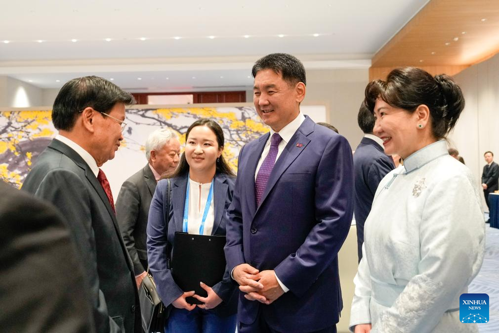 Before the banquet, the guests watched and experienced China's intangible cultural heritages, having friendly exchanges in a harmonious atmosphere. (Xinhua/Bi Xiaoyang)