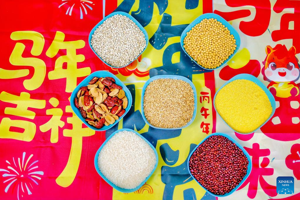 This photo taken on Jan. 26, 2026 shows the ingredients for making Laba porridge at a kindergarten in Tianjin, north China. The Laba Festival, which is celebrated each year on the eighth day of the twelfth lunar month with the custom of having Laba porridge, falls on Monday this year. (Photo by Du Penghui/Xinhua)