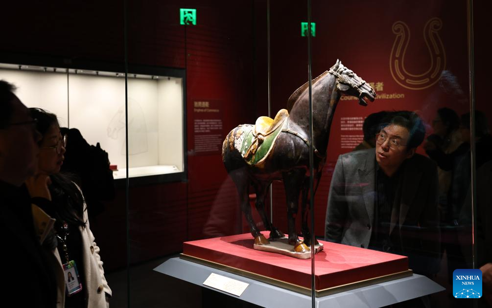 Visitors view an exhibit during Galloping Wonders: Year of the Horse Science & Culture Exhibition at Shanghai Science & Technology Museum in east China's Shanghai, Feb. 10, 2026. Jointly hosted by Shanghai Science & Technology Museum and the Palace Museum, the exhibition kicked off here on Tuesday. (Xinhua/Fang Zhe)