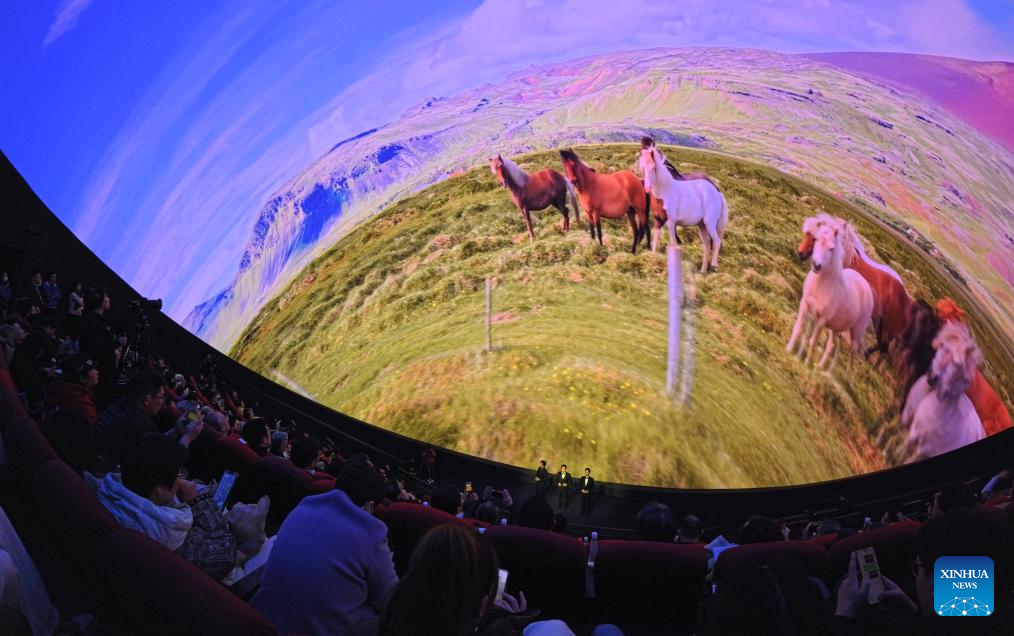 Visitors view a horse-themed concert, which is a part of the Galloping Wonders: Year of the Horse Science & Culture Exhibition, at a planetarium of Shanghai Science & Technology Museum in east China's Shanghai, Feb. 10, 2026. Jointly hosted by Shanghai Science & Technology Museum and the Palace Museum, the exhibition kicked off here on Tuesday. (Xinhua/Fang Zhe)