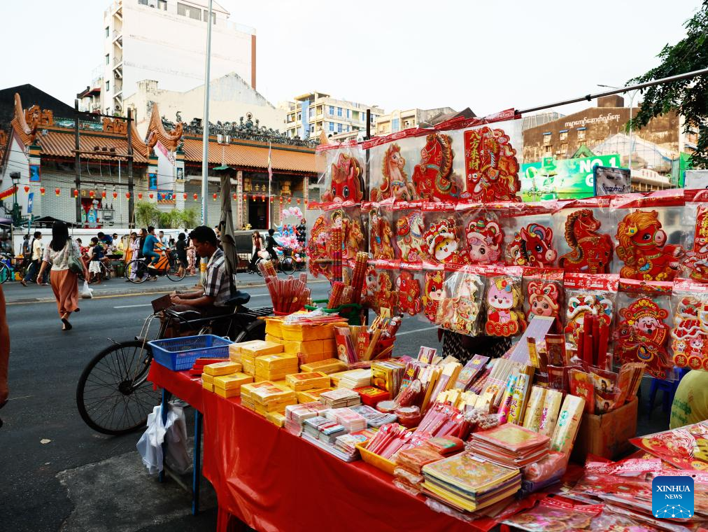 This photo taken on Feb. 11, 2026 shows Chinese New Year decorations at a shop in Chinatown of Yangon, Myanmar. (Xinhua/Myo Kyaw Soe)