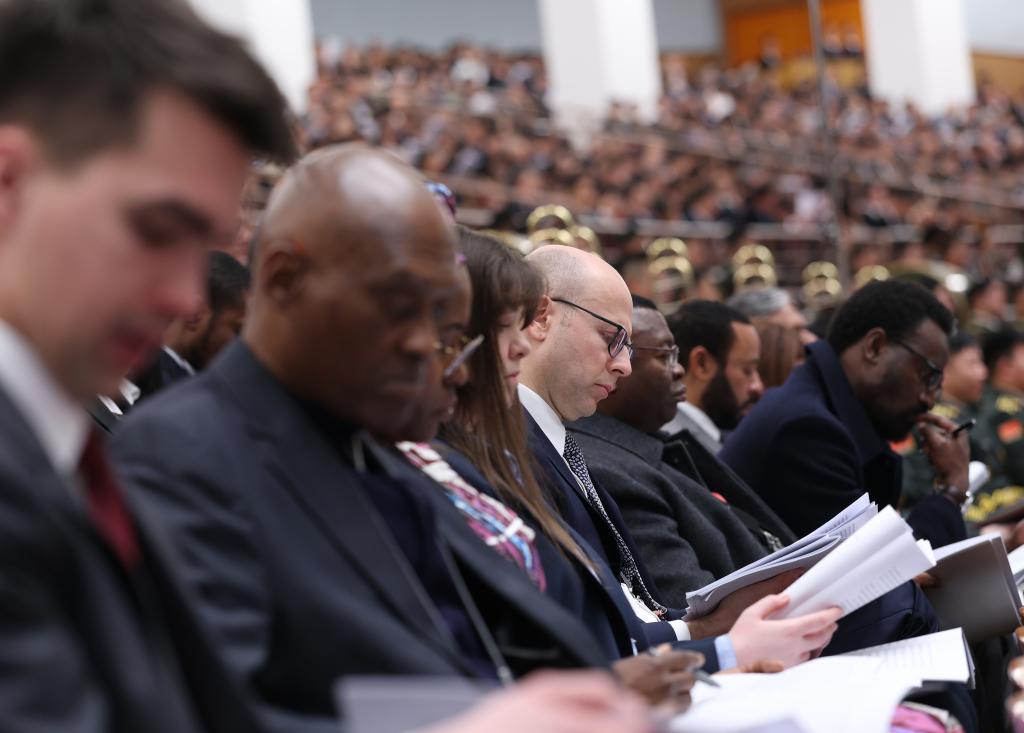 Foreign diplomatic envoys to China attend the opening meeting of the fourth session of the 14th National People's Congress (NPC) at the Great Hall of the People in Beijing, capital of China, March 5, 2026. (Xinhua/Liu Bin)