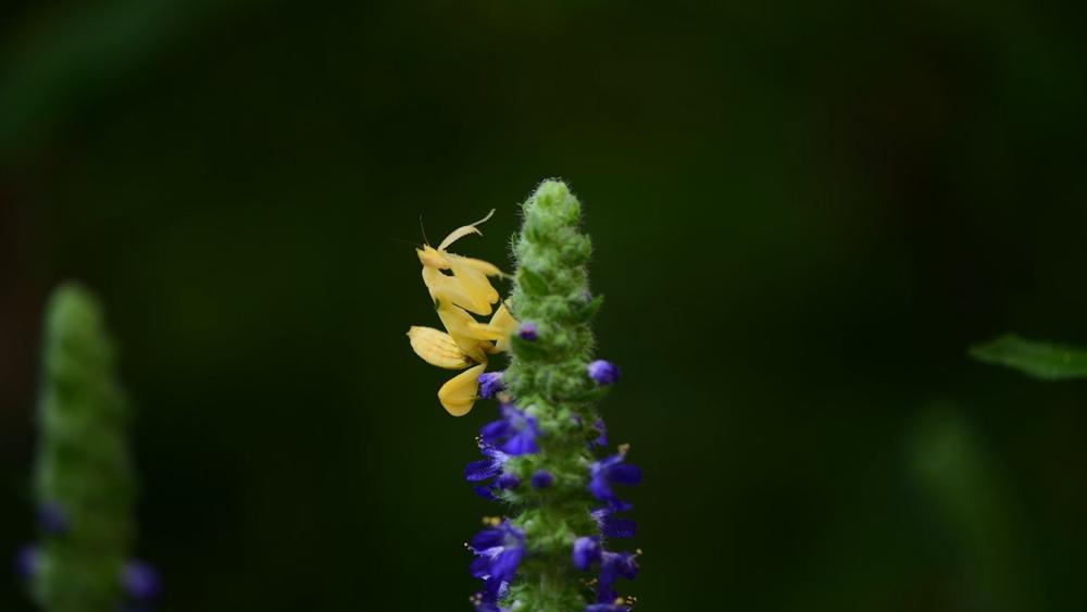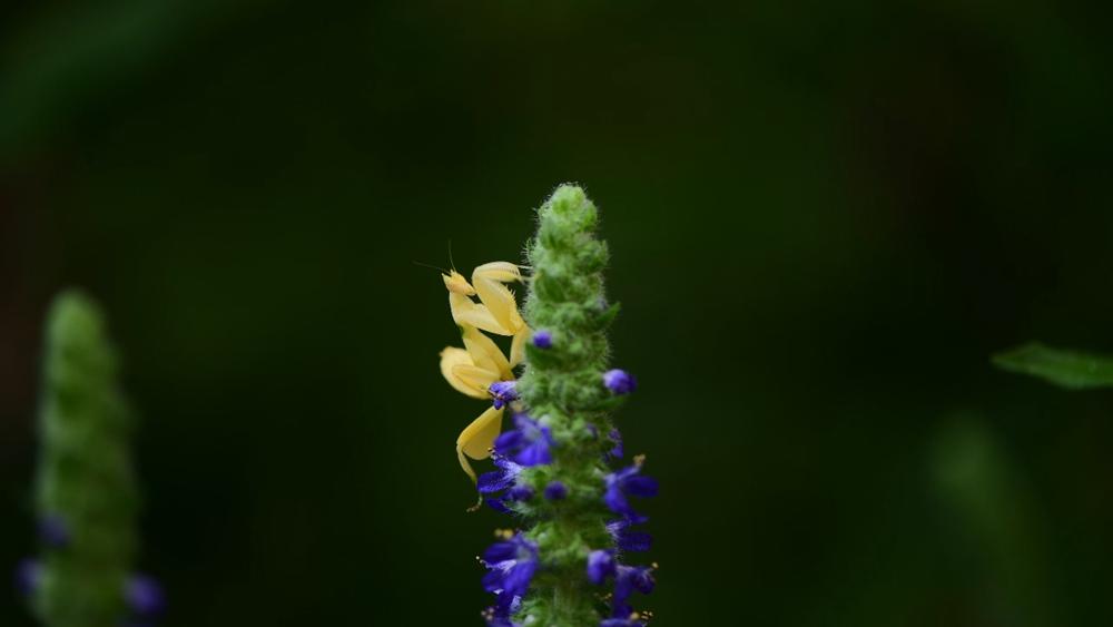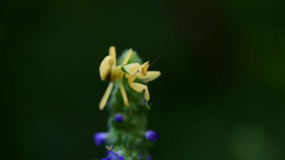A yellow orchid mantis was recently photographed in the Wangtianshu scenic area of Mengla county, Yunnan province, highlighting the region's improving ecological environment.