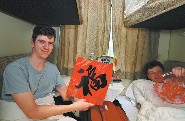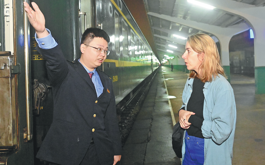 Swiss travelers on the China-Vietnam international passenger train depart from Hanoi, Vietnam, to Nanning, Guangxi Zhuang autonomous region, on Feb 10. XINHUA