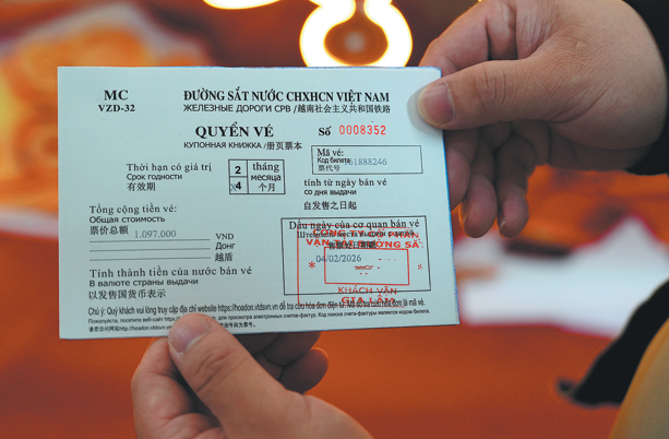 The boom in cross-border travel extends beyond the railway. Data from the Dongxing checkpoint in Guangxi shows that from Feb 15 to 23, over 139,000 people passed through the port. The third to fifth days of the Chinese New Year holiday saw a peak in arrivals of Vietnamese family groups and tour parties, with nearly 4,000 tourists entering China as part of almost 400 tour groups.