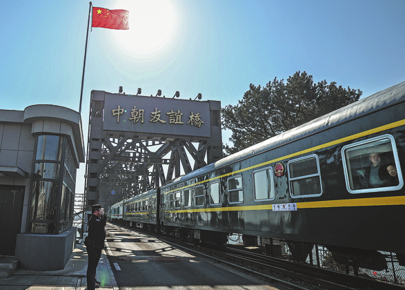 A train from the northeastern Chinese border city of Dandong, Liaoning province, departed on schedule at 10 am on Thursday bound for Pyongyang, according to China State Railway Group Co. The train arrived in Sinuiju, the DPRK's border city across the Yalu River, where its number changed before continuing to Pyongyang and arriving at 6:07 pm local time.
