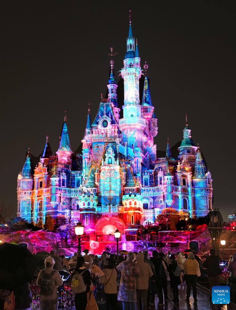 People enjoy night performances at the Shanghai Disneyland in Shanghai, east China, March 20, 2026. A series of celebrations designed for the 10th anniversary of the opening of Shanghai Disneyland started here on Friday. The Shanghai Disneyland opened here on June 16, 2016. (Xinhua/Liu Ying)
