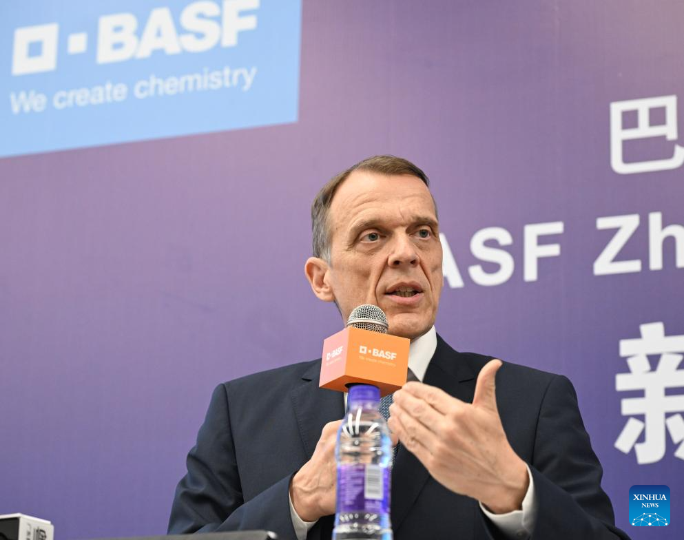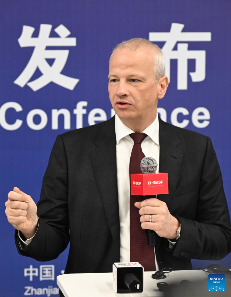 Stephan Kothrade, chief technology officer (CTO) of BASF, speaks at a press conference during the opening ceremony of BASF (Guangdong) integrated site in Zhanjiang, south China's Guangdong Province, March 26, 2026. German chemicals giant BASF on Thursday put its massive production complex in Guangdong Province into full operation, marking the largest single investment project wholly owned by a German enterprise in China.