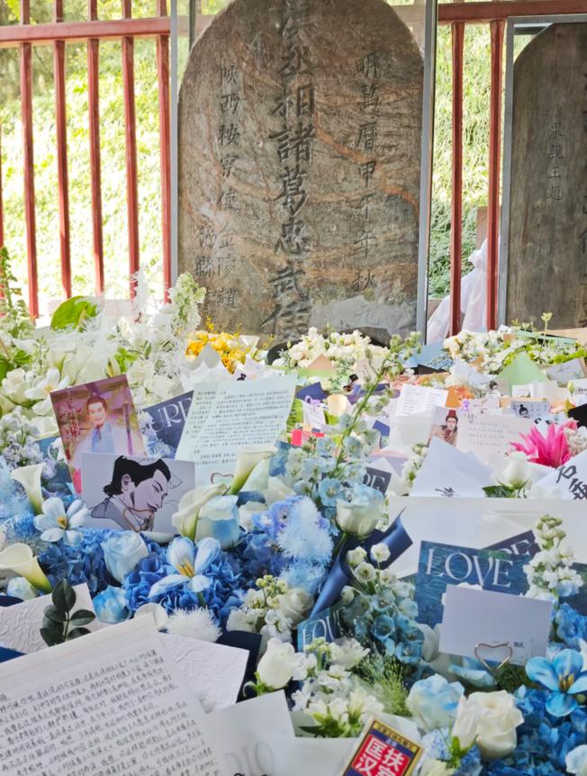 Fan Dian, a 20-year-old student from Kunming, Yunnan province, brings flowers, handwritten letters, and carefully chosen gifts to Zhuge Liang's tomb during this year's Qingming Festival. [Photo by Fan Dian/For chinadaily.com.cn]