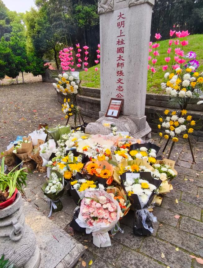 Youths visit Zhang Juzheng's tomb in Jingzhou, Hubei province, and leave tributes to the minister and reformer of the Ming Dynasty (1368–1644). [Photo by Zhang Chengxiaoya/For chinadaily.com.cn]