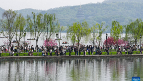 Tourists visit the West Lake scenic area in Hangzhou, east China's Zhejiang Province