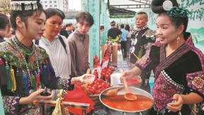People visit a market featuring intangible cultural heritage activities in Haikou, south China's Hainan Province, March 21, 2026.