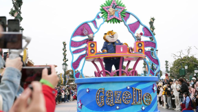 A float is seen during a parade at the Shanghai Disneyland in Shanghai, east China, March 20, 2026. A series of celebrations designed for the 10th anniversary of the opening of Shanghai Disneyland started here on Friday.