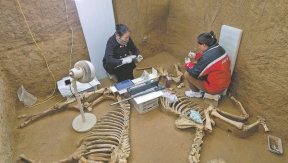 Complete skeletons of tigers, leopards, wolves, wild boars, deer, swans and other species were buried in sacrificial pits within the royal mausoleum area.