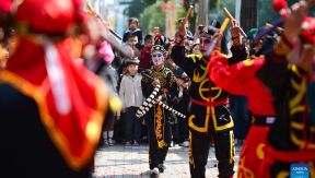 Artists perform Yingge dance in Puning, south China's Guangdong Province, Feb. 22, 2026. The Yingge dance, or "dance to the hero's song," is a folk dance of south China's Guangdong Province which has enjoyed growing popularity nationwide in recent years.
