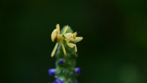 A yellow orchid mantis was recently photographed in the Wangtianshu scenic area of Mengla county, Yunnan province, highlighting the region's improving ecological environment.