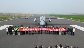 The world's most powerful cargo drone, built by China North Industries Group Corp, conducted its first flight on Tuesday in Zhengzhou, the capital of Henan province.