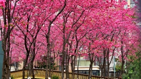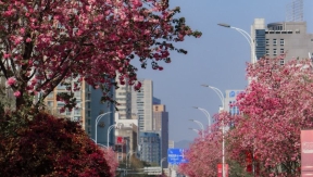 Nowadays, cherry blossom, peach blossom and pink crabapple flowers are in full bloom in Kunming and form the pink flower sea.