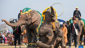 This photo taken on Feb. 22, 2025 shows a scene at the Elephant Festival in Xayaboury, Laos. The annual Elephant Festival is held here from Feb. 18 to 24.