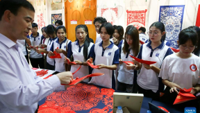 A traditional Chinese paper-cutting exhibition was held at the China Cultural Center in Yangon, Myanmar on Wednesday.