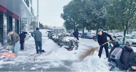 近日,安徽阜阳遭遇持续降雪天气。中国人寿阜阳分公司办公区域、客户服务大厅周边及责任路段铺满了厚厚的积雪,给市民通行带来极大不便,也为前来办理业务的客户产生安全隐患。