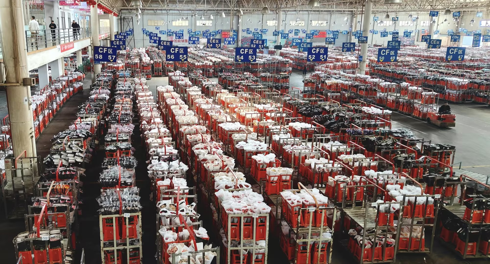 现场从事花卉生意二十余年的批发商马金科印证了这一趋势。他在当天下午的线上拍卖中发现,往期品质较好的鲜花价格已稍有上涨。他的货源主要发往华东地区,同时也注意到去年鲜切花的出口量有所增长。