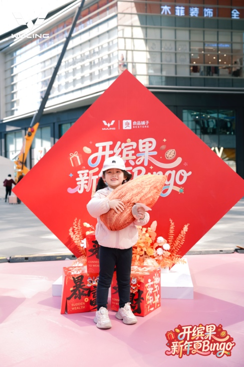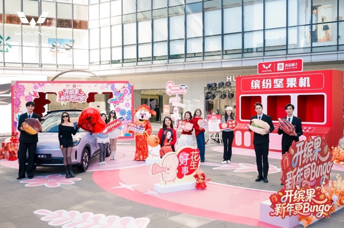 快闪活动现场化身新春“送福驿站”,一个巨大的五菱与良品铺子新春联名礼盒映入眼帘,宾客们不仅第一时间体验了五菱缤果家族的灵动驾趣与出色空间,更参与了“缤纷坚果机”、“吉祥年画DIY涂鸦”“后备箱快乐夹坚果”等创意互动。笑声与惊喜此起彼伏,每一辆缤果都仿佛成了传递福气的“新年幸运座驾”。