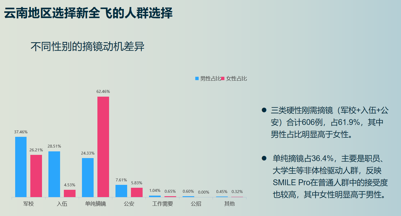 趋势一:男性摘镜刚需远超女性,职业驱动显著