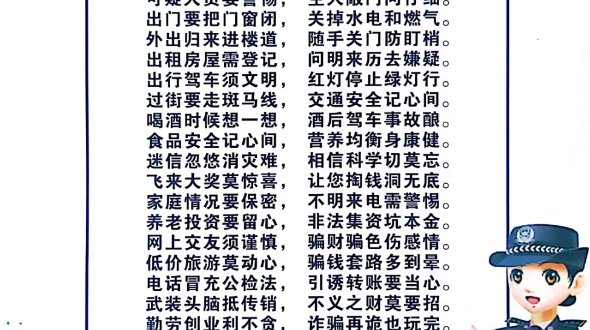 居民安全告知顺口溜