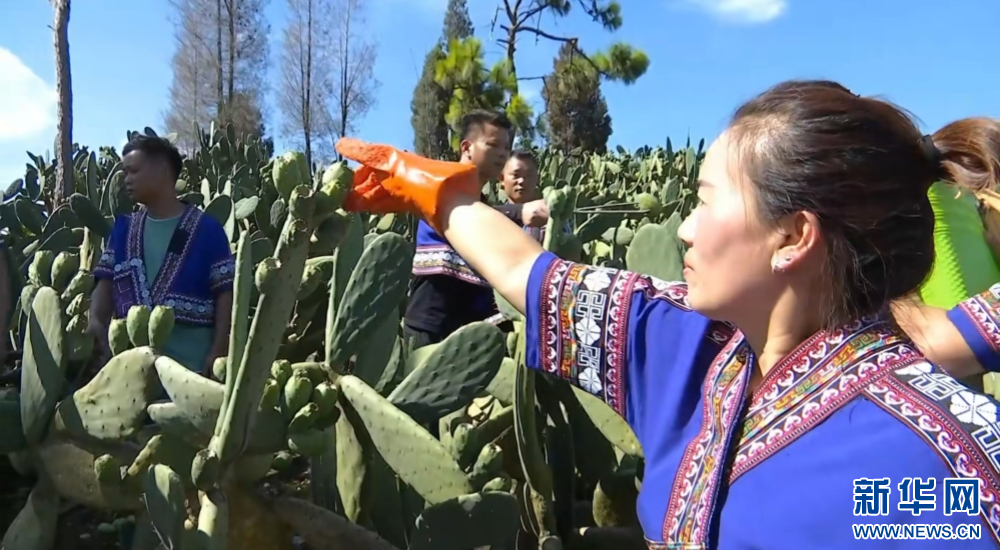 2026年3月26日,云南省文山壮族苗族自治州文山市庄子田村村民正在采摘仙人掌。新华网发(文山市融媒体中心供图)