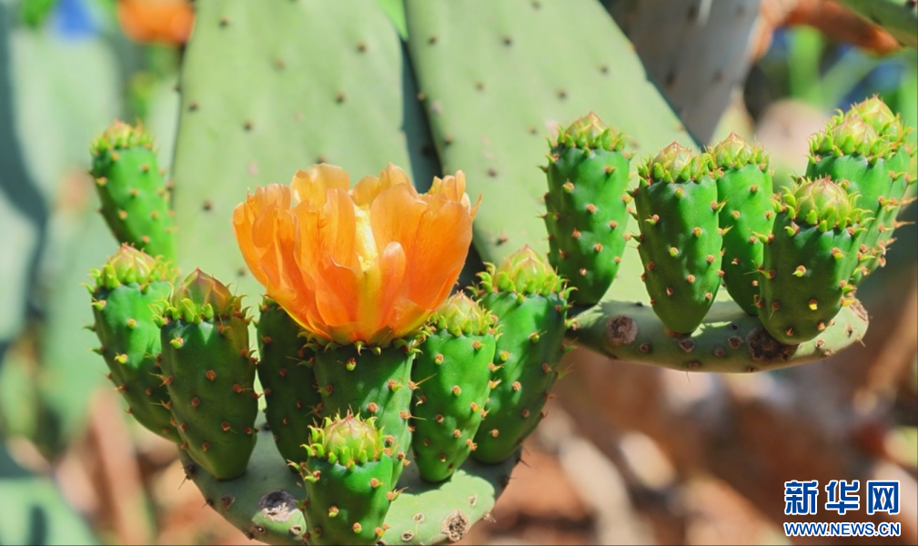 2026年3月31日,云南省文山壮族苗族自治州文山市庄子田村种植的仙人掌花朵盛开。新华网 刘馨蔚 摄