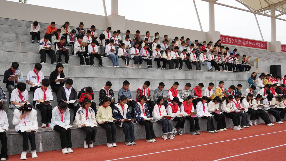 开幕式后,校园迅速切换至“静默模式”。在“静默阅读”环节,学生们手持心爱的书籍,在足球场、台阶等处席地而坐,沉浸于文字世界;老师们也融入学生群体,与孩子们一同低头阅读,还不时与身旁学生轻声交流书中感悟。整个校园浸润在浓厚的阅读氛围之中。三十分钟的沉浸式阅读,让师生们暂时放下琐事与杂念,集体静心阅读,寻得了一段沉心与好书对话的宁静时光。