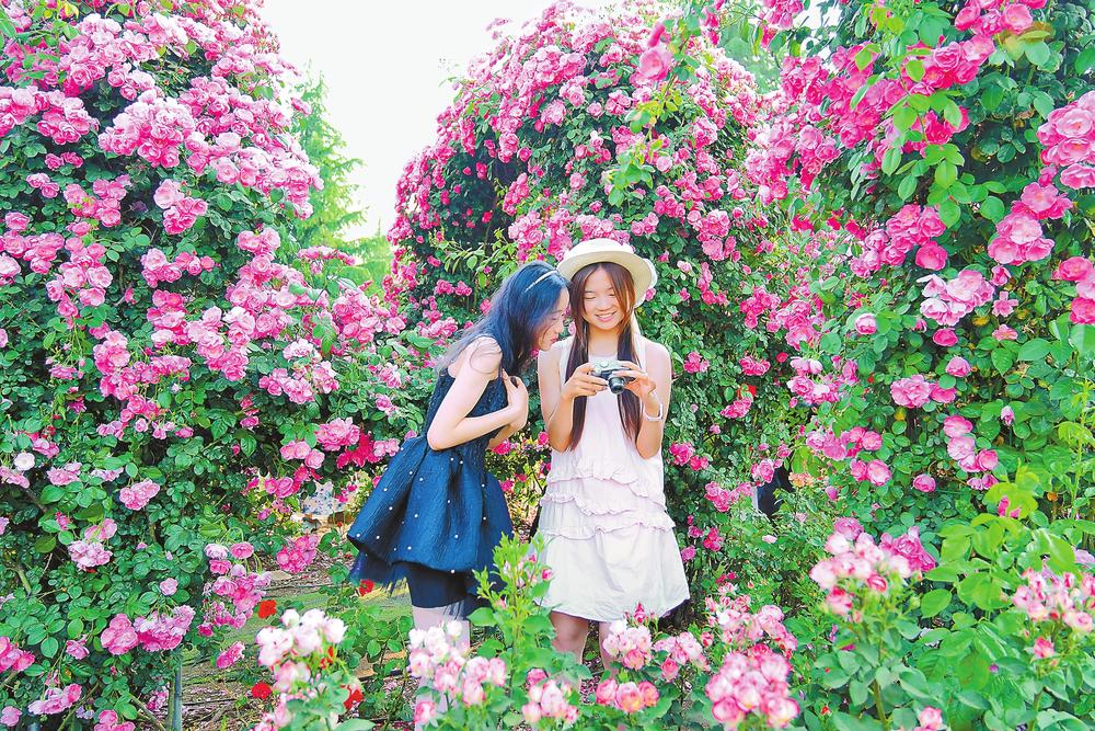 近日,云南大学呈贡校区泽湖畔的玫瑰园内,大片滇红玫瑰竞相绽放,浪漫迷人的花海吸引了众多市民游客前往打卡拍照,记录美好春日光景。(云南日报 记者高吴双)