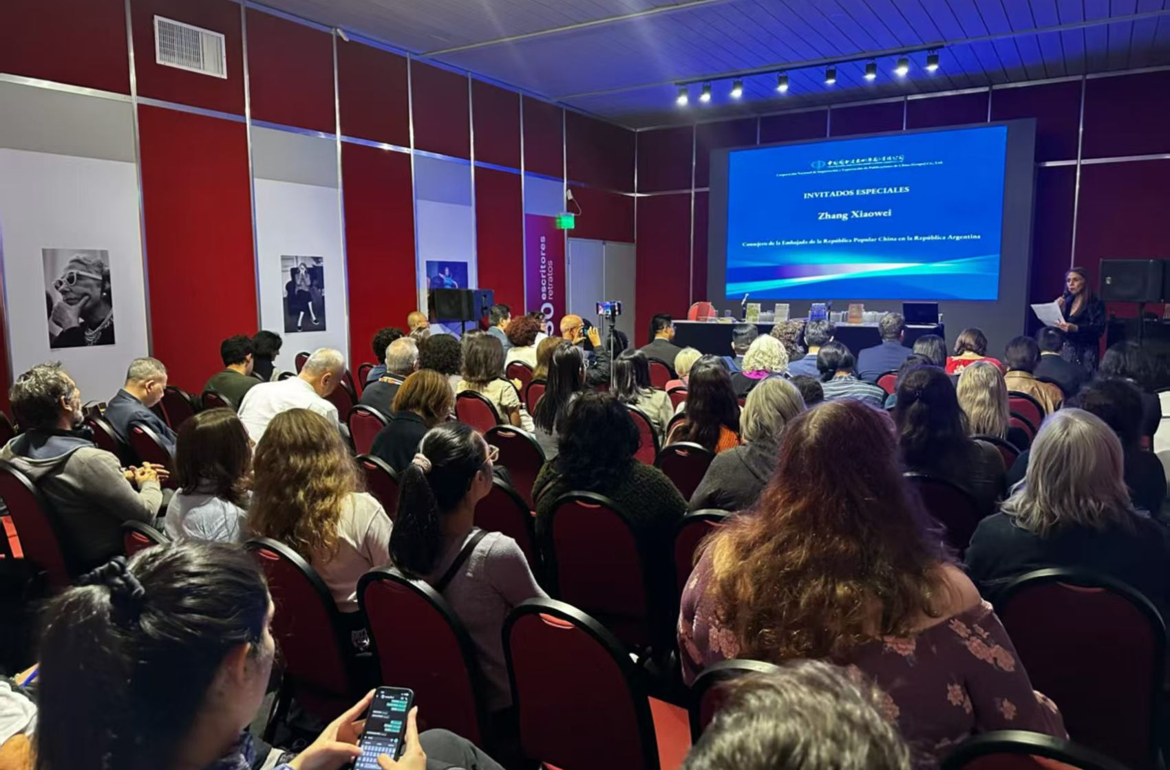 在书展官方平台举办中阿当代文学对话暨翻译成果推介会。邀请中国驻阿根廷使馆文化、科技、教育参赞张小伟莅临指导,中国先锋小说家、云南省作协副主席、昆明作协主席、“十月文学奖”得主陈鹏,中拉文学交流专家孙新堂教授,与阿根廷知名诗人路易斯特德斯科、布宜诺斯艾利斯大学文学教授蕾莉亚·甘达拉、阿根廷国立何塞·帕斯大学校长达里奥·库辛斯基等阿方嘉宾同台对话,围绕中国当代文学创作、先锋叙事、作品西语译介、跨文化传播等议题深入交流,集中展示《琥珀里的昆虫》《加缪之死》等中国文学西语翻译成果,推介胡弦诗人《定风波》,陈鹏作家《群马》等力作,推动中阿文学深度共鸣。活动还特邀阿根廷《当代》杂志主编、第十六届中华图书特殊贡献奖获得者伍志伟,阿根廷拉丁美洲出版集团社长费尔南多·贾拉,阿根廷拉普拉塔国立大学孔子学院中方院长龙敏利,阿根廷国会大学校务委员会主任梅赛德斯·索拉及中阿出版单位代表莅临现场参与交流。