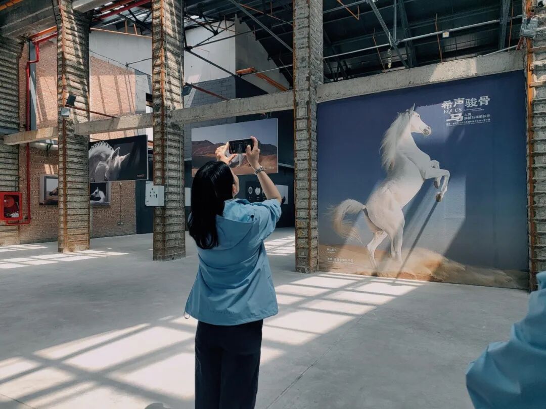 “第一感觉就是——有爱,”在展厅,牢牢抓住孙莹的是一匹新生的马驹和它的妈妈,“马的世界里也有柔软的羁绊,也有新生的悸动,传递出人类也能共情的情感。”赵艳春被两匹卢西塔诺马极致的局部特写吸引,“在纯黑背景的衬托下,马的身体轮廓被抽象成起伏的山峦、流动的沙丘,让马的躯体呈现出温柔而坚韧的生命力”;杜嘉欣被奔驰马群不加修饰的野性之美打动,“既感受到生命的蓬勃张力,又被马群自由不羁的精神所震撼,仿佛能听见马蹄声在耳边回响”。